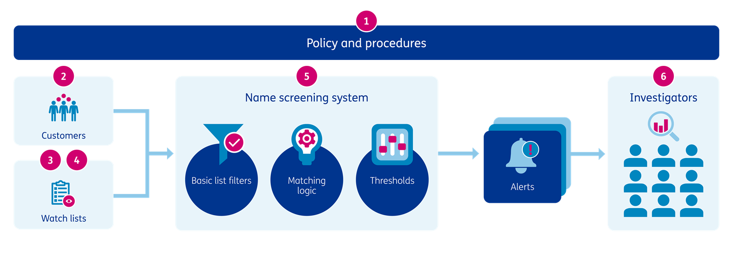 | Low integration effort as it does not require changes to the watch list configuration or name screening systems | |